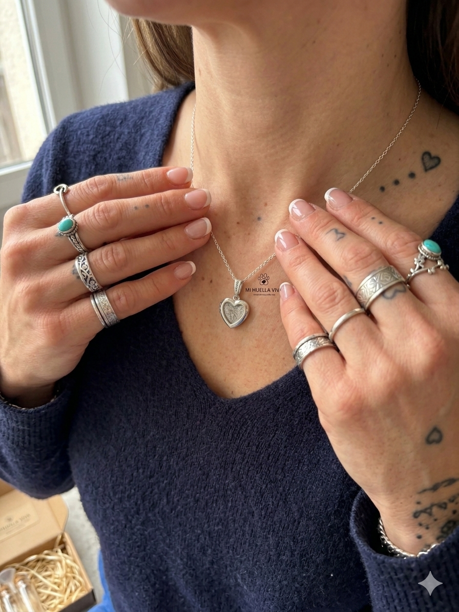 ¡Hola! Soy de Mi huella viva, y déjame contarte lo que hace que nuestros collares sean especiales. No son solo joyas; son pequeños tesoros que te permiten llevar a tu mascota cerquita de ti, siempre. La magia está en que cada collar puede guardar un pelito o un poquito de ceniza de tu compañero. Es una forma preciosa y muy personal de mantener su recuerdo vivo y sentir que sigue a tu lado, como si nunca se hubiera ido.